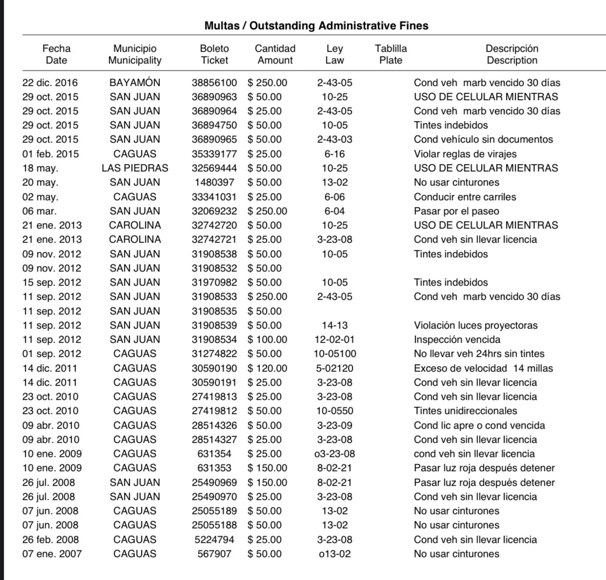 Juan R Costa Auf Twitter Algunas Multas De Transito Que Ha Acumulado Jensen Medina Desde Tan Temprano Como 2007 Detalle Jensen No Tenia Que Mostrar Licencia A Psaj Fue El Quien La