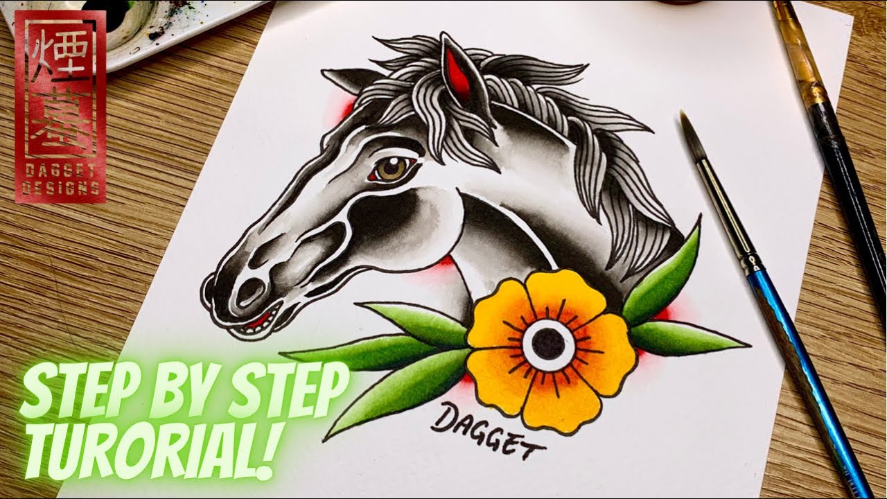 How To Draw A Horse Head Step By Step Draw Out A Tattoo Design On Paper Youtube